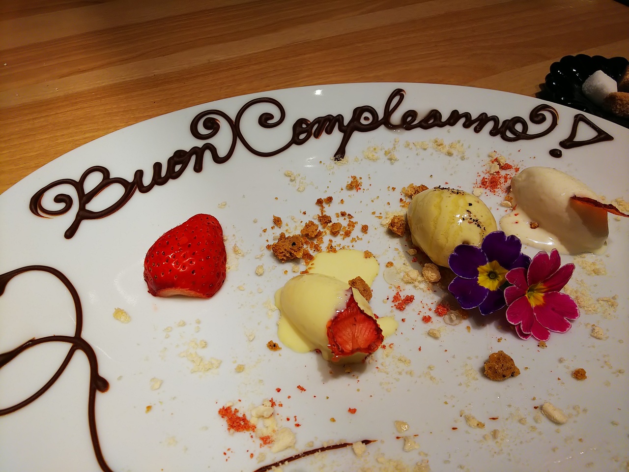 予約の際に誕生日だと伝えていたら、デザートの時にサプライズでジェラートの盛り合わせのプレートを出してくれました