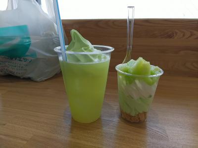 メロンの果汁にメロンソフトのトッピングです