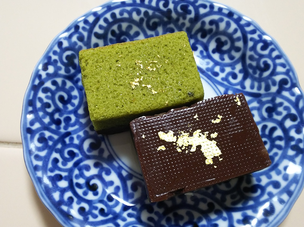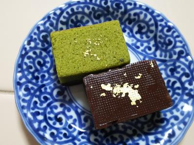 今回は抹茶風味のカステラとチョコレート羊羮を組み合わせたお菓子をお土産にしました- 旅行時期