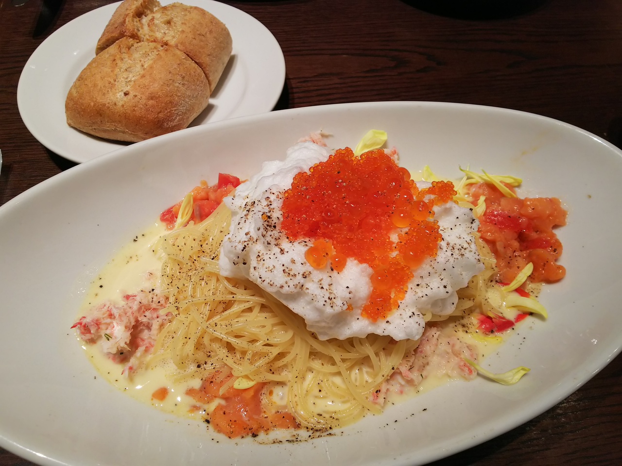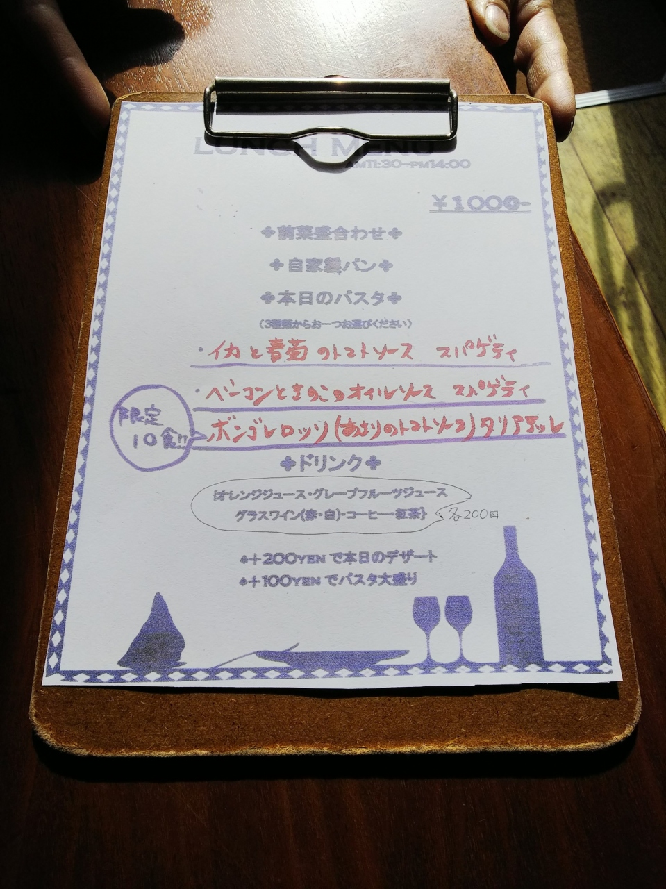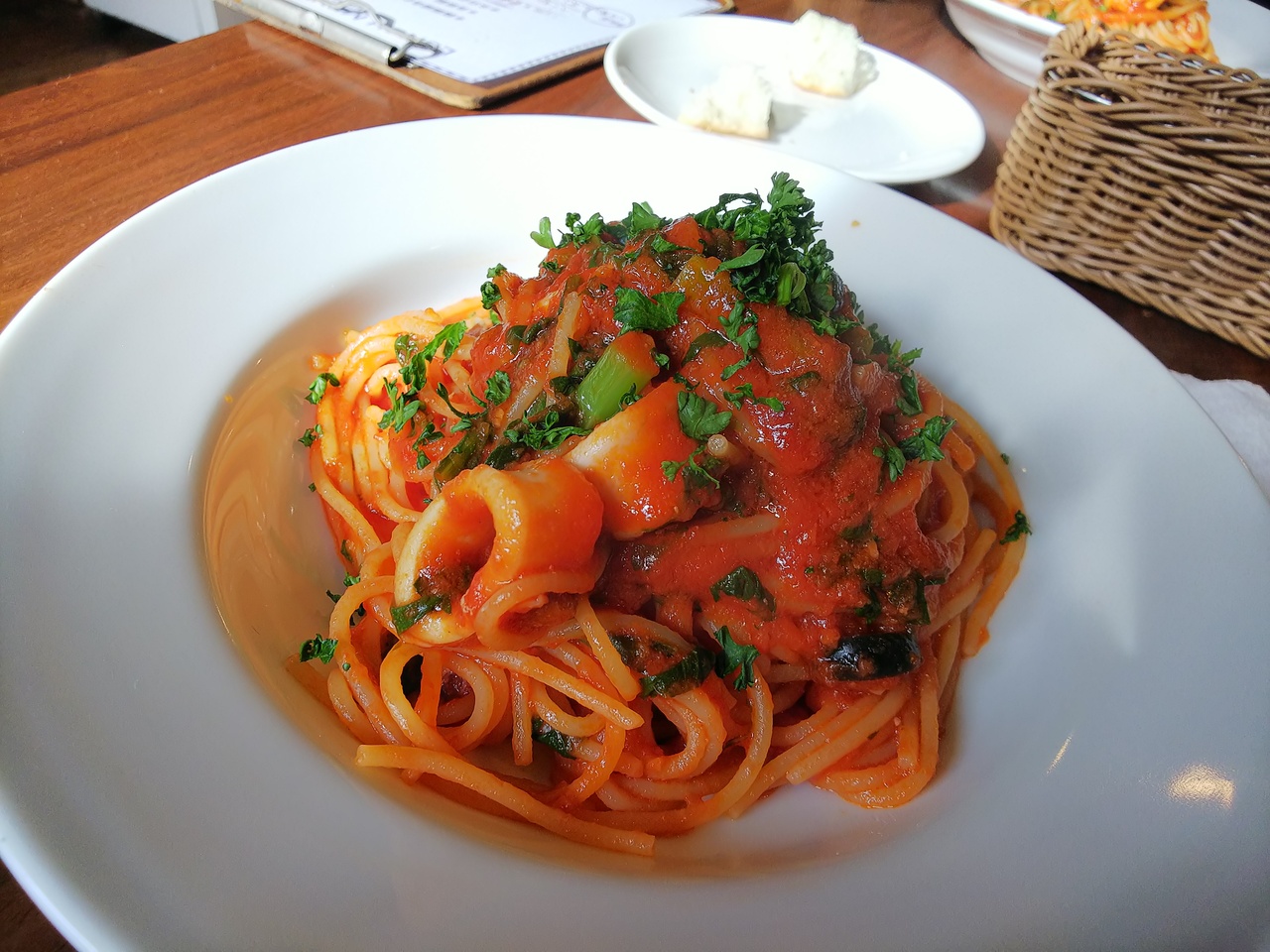 1000円のパスタランチは三種類のパスタから選べて、前菜盛り合わせとパンも付いてお得なランチでした