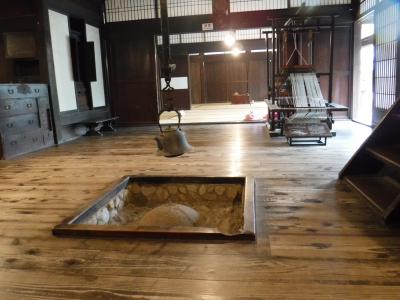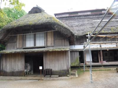 日本有数の豪雪地帯、出羽山地の月山山麓の月山沢というところにあった農家で、江戸中期(1767年)に建てられたそうです。月山沢は1976年にダム建設のため廃村となり、現在は水没しているそうです。明治中期に、中門(玄関部分)、座敷、縁側、2階などが増築され、多層型の養蚕農家となったそうです。中門づくりとよばれるL型の家は、秋田や新潟などの豪雪地帯よく見られる伝統家屋で、家の中には馬屋もあります。