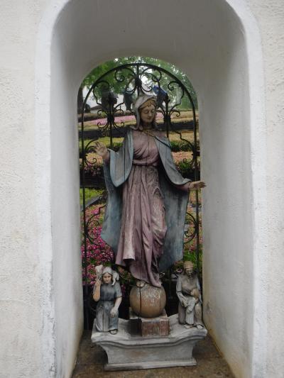ドイツ南部、オーストリア国境近くにあるアルプス山麓の村バイエルン州のガルミッシュ・パルテンキルヘン周辺をモデルとして、のどかな美しい村の情景を復元したものだそうです。聖ヨセフの泉を中心に、色鮮やかなフレスコ画の外壁をもつ2棟の民家があり、奥の小丘には礼拝堂が建っています。村の周りには、マイバウム、干草小屋、マリアの祠、家畜の水飲み場があります。