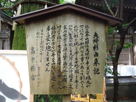 古事記の一文に「筑紫日向高千穂之久士布流多気に天り坐しき」と書かれており、古くは「槵觸の峯」を御神体としてお祀りしていたそうです。