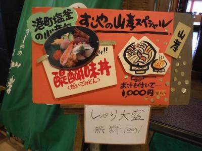 マリンゲート塩釜の2階にあります。ランチは醍醐味丼というのがおすすめのようで、海鮮丼にアサリの味噌汁がサービスされます。しゃり大盛り無料がうれしいです。1000円なので、これを食べると駐車料が無料になります。