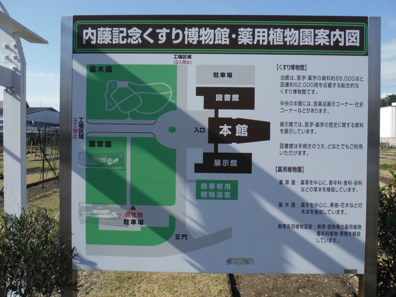薬品メーカーのエーザイの工場敷地内にある博物館で、薬に関する様々な展示が行われているほか、広い薬草園が建物の前には広がっています。また、建物の隣には温室もあり、熱帯植物なども育てられています。入場は無料で、入場時には自社の飴をくれました。