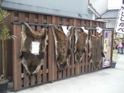 香嵐渓で明治時代から続く料理屋。なんといってもウリは冬のしし鍋だと思います。もともとが肉屋なので、品質については文句ありません。昔行ったときは店先にイノシシが転がしてありました。今回行ったときは捌かれたイノシシの皮が披露してありました。