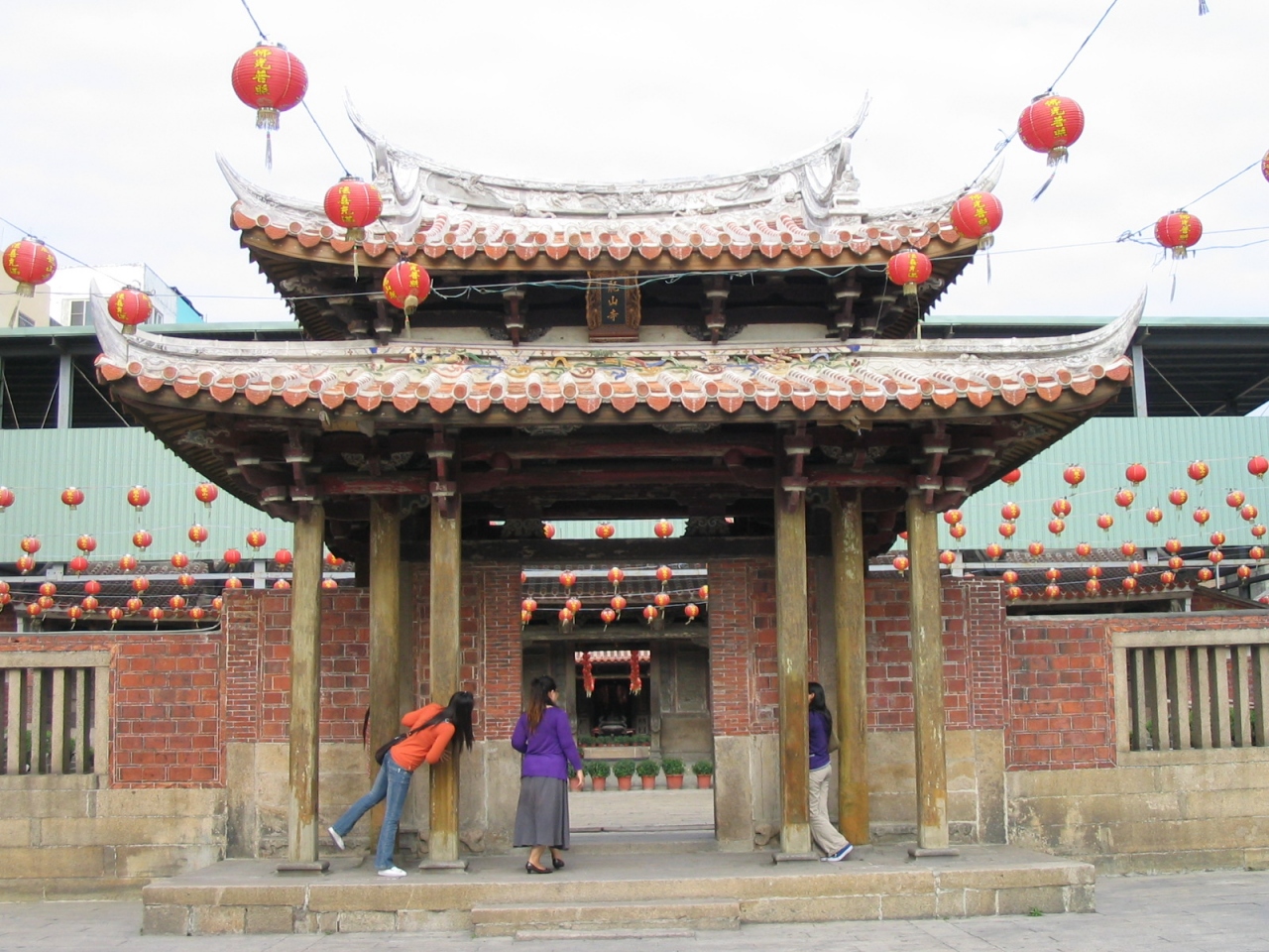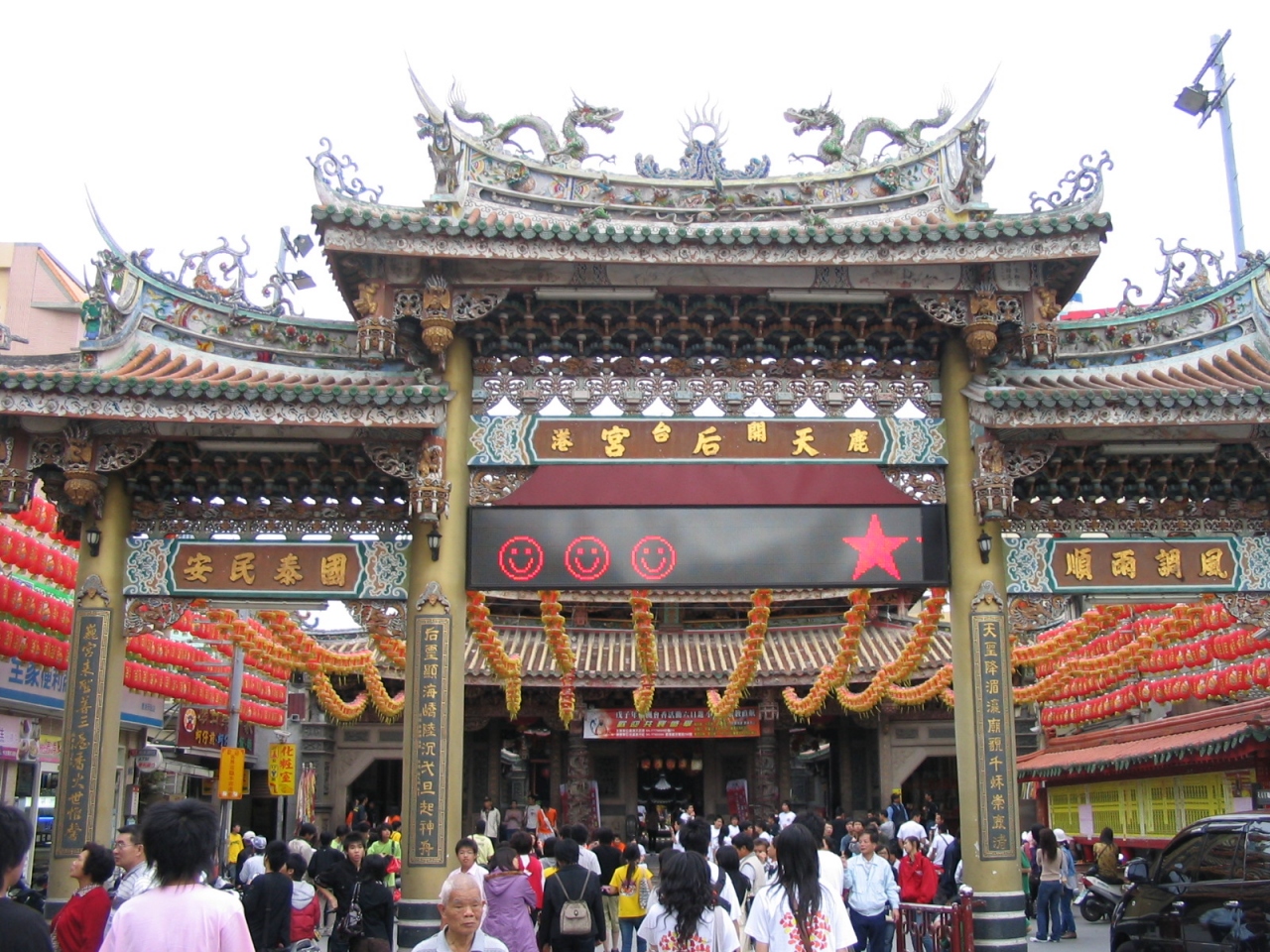 鹿港の大通り、中山路を進むあります。龍山寺に比べ華やかな雰囲気で、入り口付近には屋台や商店が並び、日本のお寺の縁日のようで活気があります。航海の安全を守る神の媽祖が祀られています。訪れた時には遠足か、修学旅行のような雰囲気の若者たちがいました。