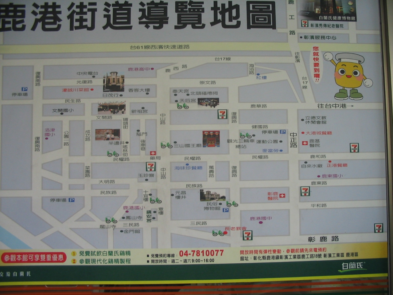 清の時代に福建と交易する港町として栄えました。また、中国からの移民も多く、「一 府、二鹿、三孟甲」 (府…台南の安平、鹿…鹿港、孟甲…台北の萬華)と称されるほど繁栄し、台南の安平に続く台湾第二の都市として台湾文化史の「鹿港期」を築いたそうです。港が土砂の堆積で浅くなって、利用できなくなったりしたこともあり、鹿港も勢いを失ってしまいました。その代わり、レンガ造りの建物が並ぶ小道などが残り、多くの人が訪れる観光地になっています。