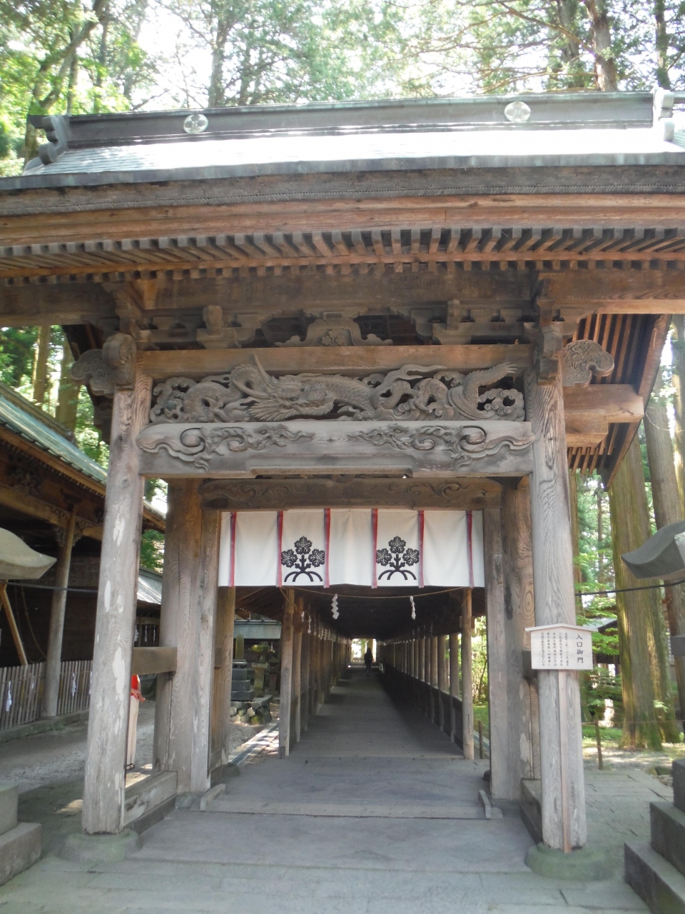 御祭神である建御名方神が最初に居を構えたところと伝えられ、諏訪信仰の発祥の地とも言われています。道路からすぐの所に鳥居があり、その道路を挟んだ反対側に駐車場もあるので、そちらに駐車したくなりますが、上に上がった方が本殿まで行くにはおすすめです。ここから100mという看板がありますが、実際には階段と上り坂を200m以上は上がらねばなりませんから。