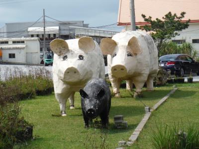 那覇から国道58号線をひたすら北上し、読谷村に入りしばらく走った左側にあります。巨大な豚さんのオブジェが目印なのでよくわかります。三頭の豚さんの親子で、一番前が子ども、次がお母さん、最後がお父さんです。なぜ、お父さんと分かるかは現地でお確かめ下さい。工場見学も可能で、沖ハムの色んな商品を買うことができます。また、黒糖工場もあり、こちらも見学できます。