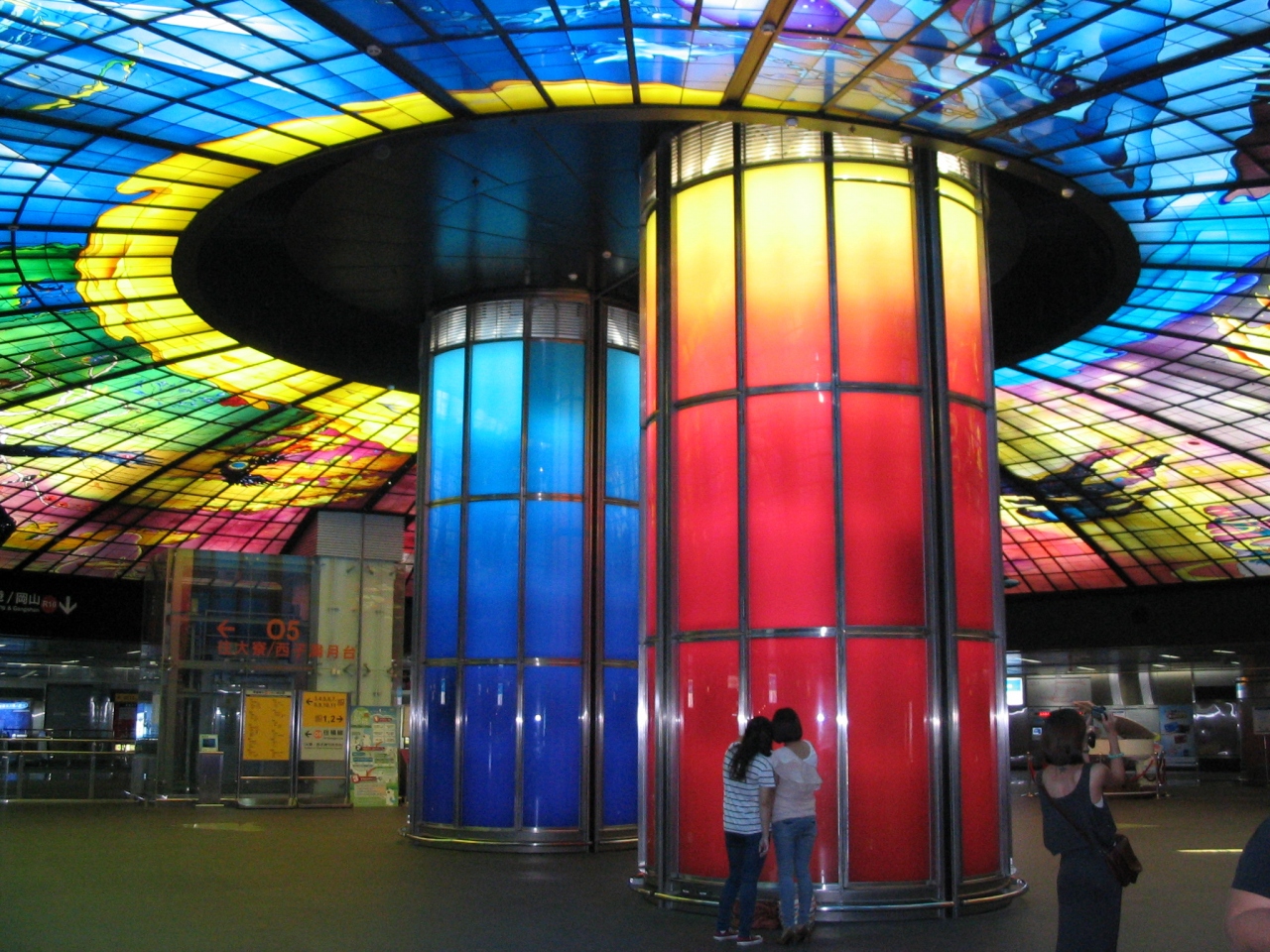 高雄には地下鉄が紅線と橙線の2路線あります。その交差点に当たるのが美麗島駅です。駅はカラフルで観光名所のようになっており、結婚アルバム用の写真を撮っていることもあります。また、上に上がれば六合二路夜市ということもあり、観光客にも馴染みのある駅だと思います。
