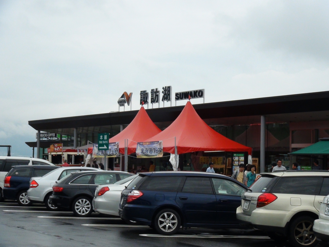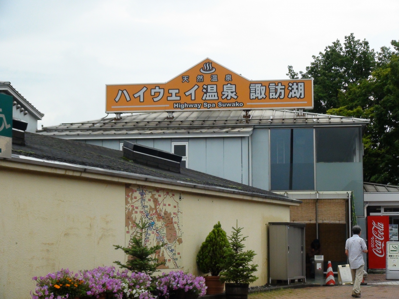 中央自動車道にある。名古屋方面からだと長野道と分岐して5分程走ったあたりにある。サービスエリアの名前にもなっている諏訪湖が眼下に広がり、その先には八ヶ岳の姿を望む景色のよいサービスエリアである。ここの売りは何と言っても温泉。ハイウェイ温泉というネーミングで営業している。勿論、土産物や飲食のコーナーも充実している。