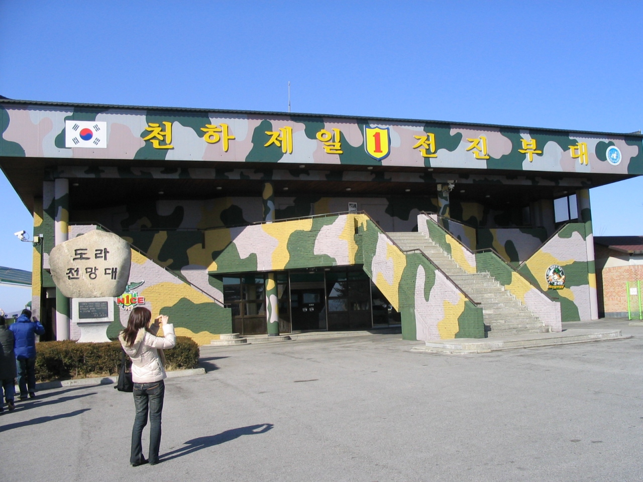 ソウルからバスで走ること1時間強。非武装地帯にはいる時に検問があり、制服の軍人が乗ってきました。そしてパスポートチェック。普通の空間ではないところへ行くという気分になります。展望台からは北朝鮮の開城の街が見えました。また、北側から掘られたトンネルの見学もできます。トロッコに乗って地下に下りると、ダイナマイトを入れる穴とかリアルな展示が見られます。土産物屋ではなぜか北朝鮮産の焼酎が買えました。