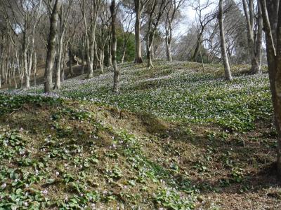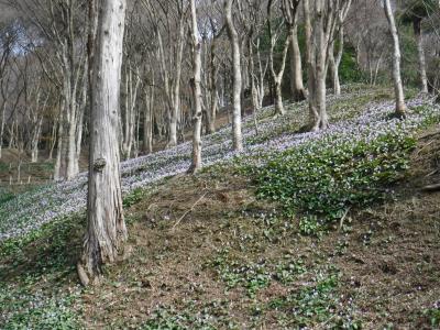 香嵐渓といえば一番は紅葉と時期というのが相場ですが、近年はカタクリの群生も有名になってきました。香嵐渓のほとりの飯盛山がその群生地として整備されており、多くの見物客が訪れていました。飯盛山の山頂まで群生地は続いているようでしたが、登頂はせず麓のほうのみ楽しみました。それでも見ごたえのある気色でした。