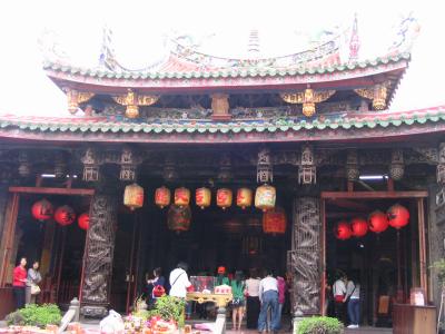 鹿港の大通り、中山路を進むあります。龍山寺に比べ華やかな雰囲気で、入り口付近には屋台や商店が並び、日本のお寺の縁日のようで活気があります。航海の安全を守る神の媽祖が祀られています。訪れた時には遠足か、修学旅行のような雰囲気の若者たちがいました。