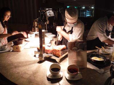 シャングリラファーイースタンプラザ台南のメインダイニング?朝食でしか利用したことがありませんが、郷土料理をオープンキッチンで作ってくれたりします。また、ジュースなどのワゴンサービスもあります。サラダバーも充実しています。ついつい食べ過ぎてしまいます。