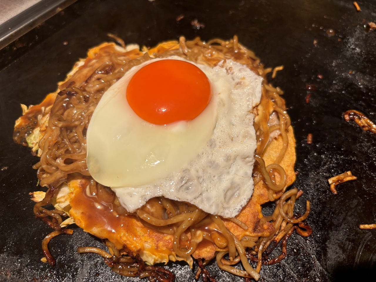 明太もちチーズもんじゃなど定番メニューもあります。イカ焼きなんかもできてワクワクしますね。モダン焼きも頼んでみました。- 旅行時期
