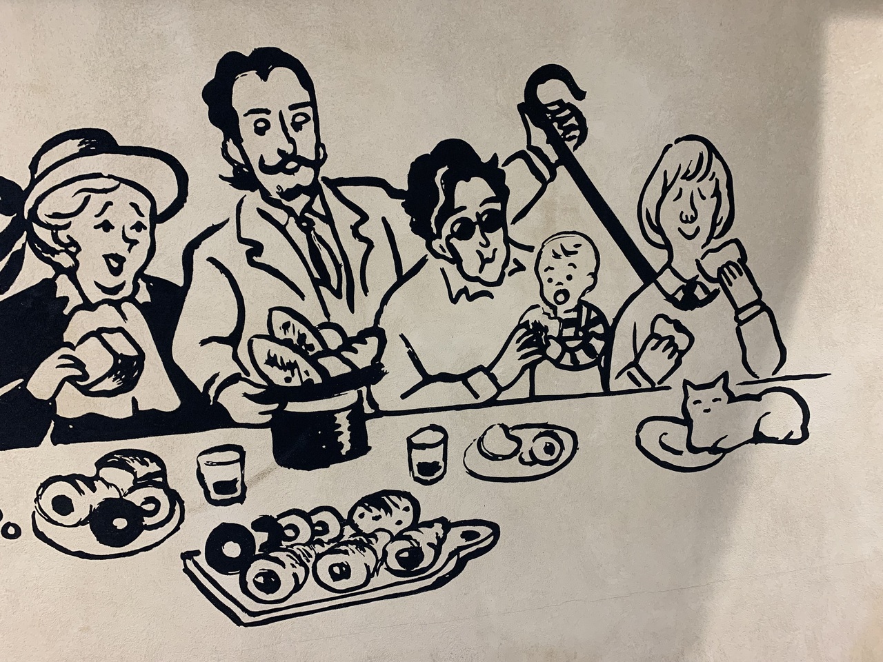 ビートルズの写真やアルバムのジャケットなどがおしゃれに展示されていて、なかなか雰囲気の良い店内です。パンの食べ放題メニューもあります。