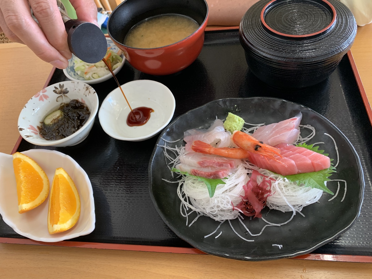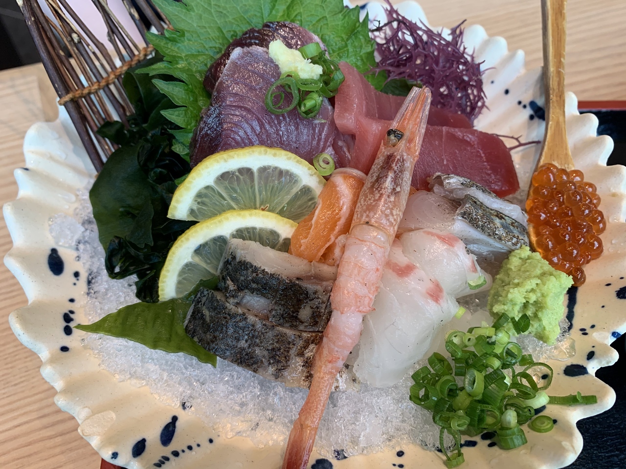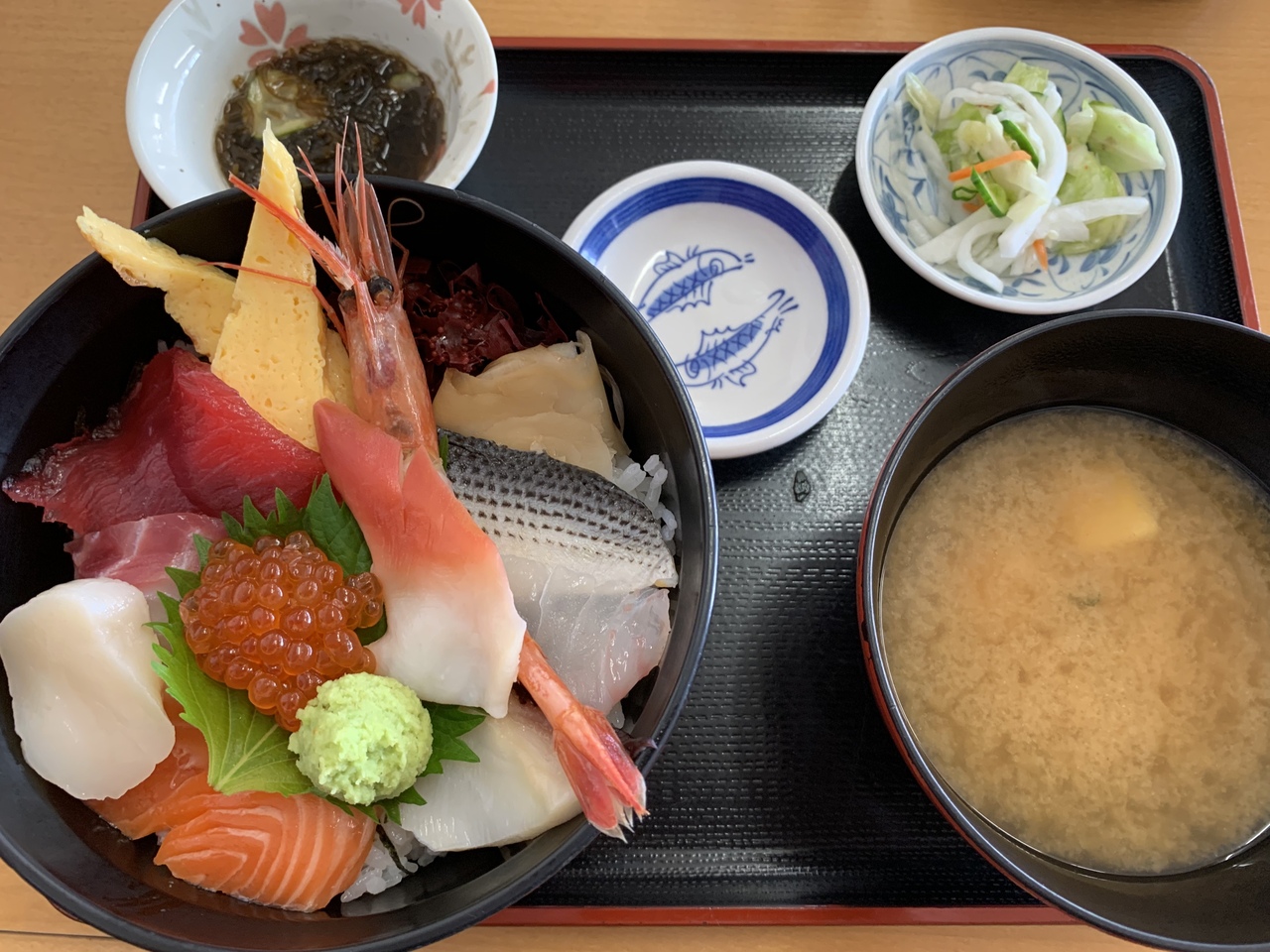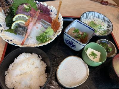 海鮮丼(¥1450)と刺身定食(\1500)を頼みました。- 旅行時期