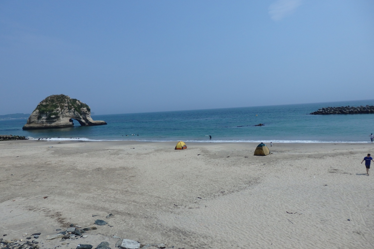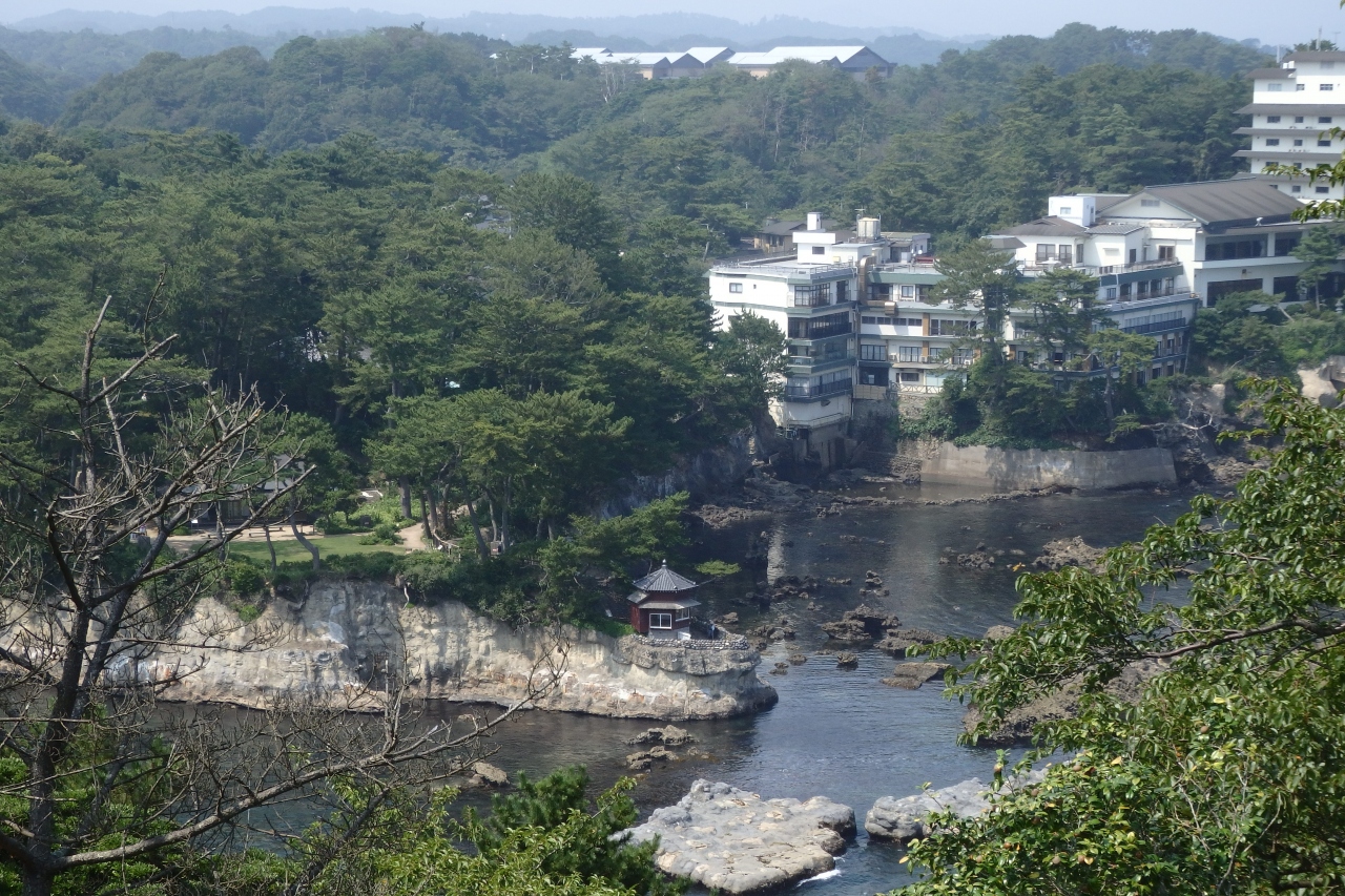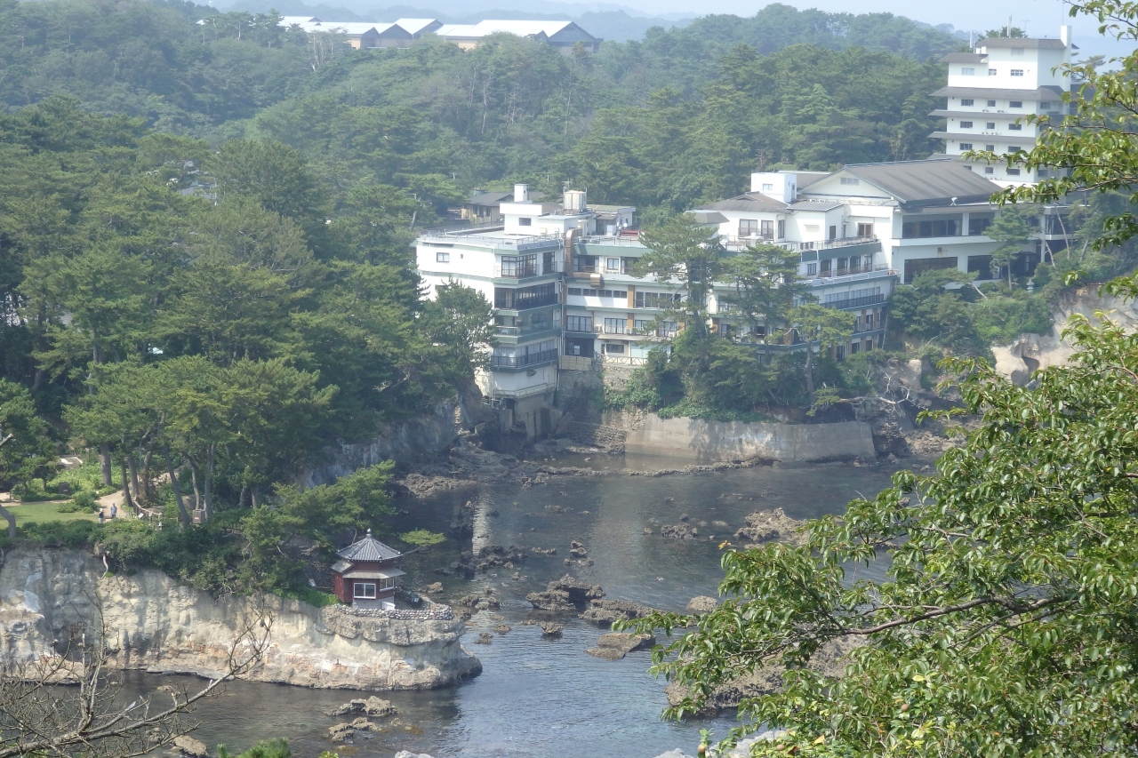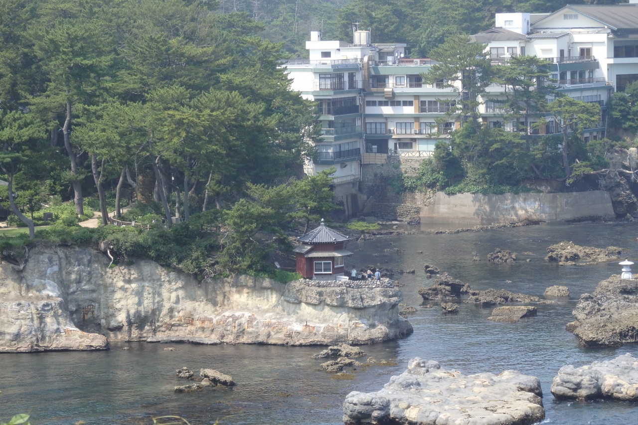 大津岬の突端にあるので岬の向こうに六角堂とそれを囲む岩場と波の景色が素晴らしく