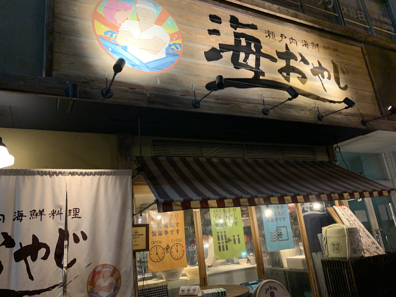 せっかく香川に来たので、うどん以外の香川名物も食べたいと思い高松駅前にあるこちらに。「海おやじ」というお店ですが、おやじ以外のお客さんもいるので安心してください(笑)