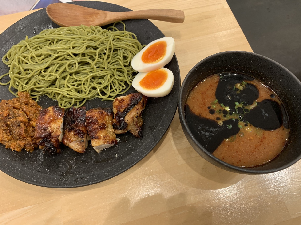 スーパーフード・モリンガを練り込んだ麺(緑色の麺)