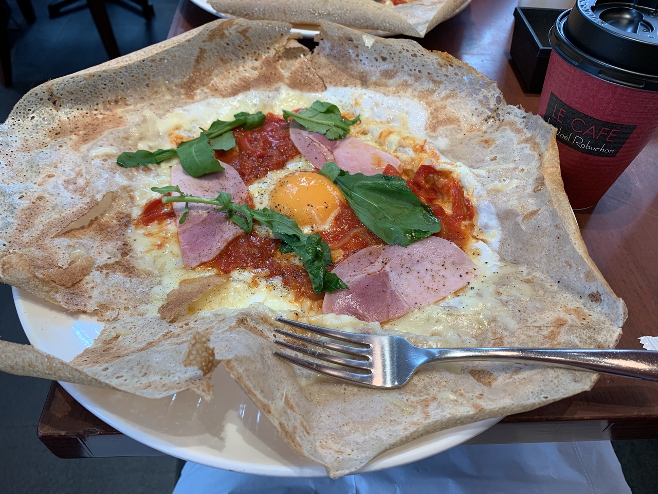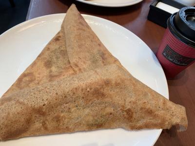 ランチガレットセット(1150円税込)を注文、ガレットとドリンク(コーヒーか紅茶)のセットです。美味しいし、とても食べ応えがありました。