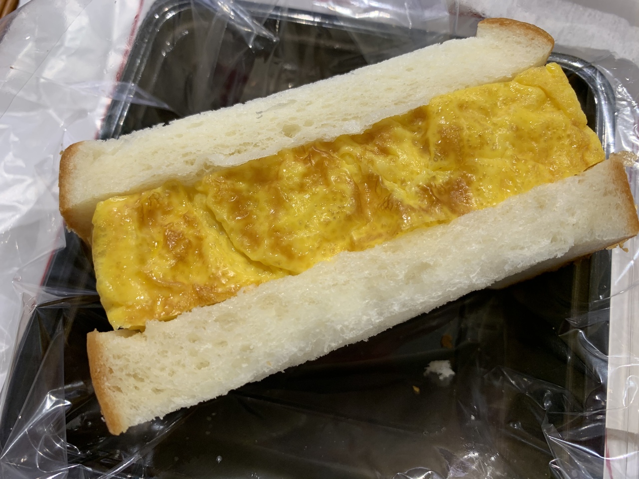 マヨネーズを塗った食パンに松露の厚焼き玉子がそのままパンにはさまれています。
