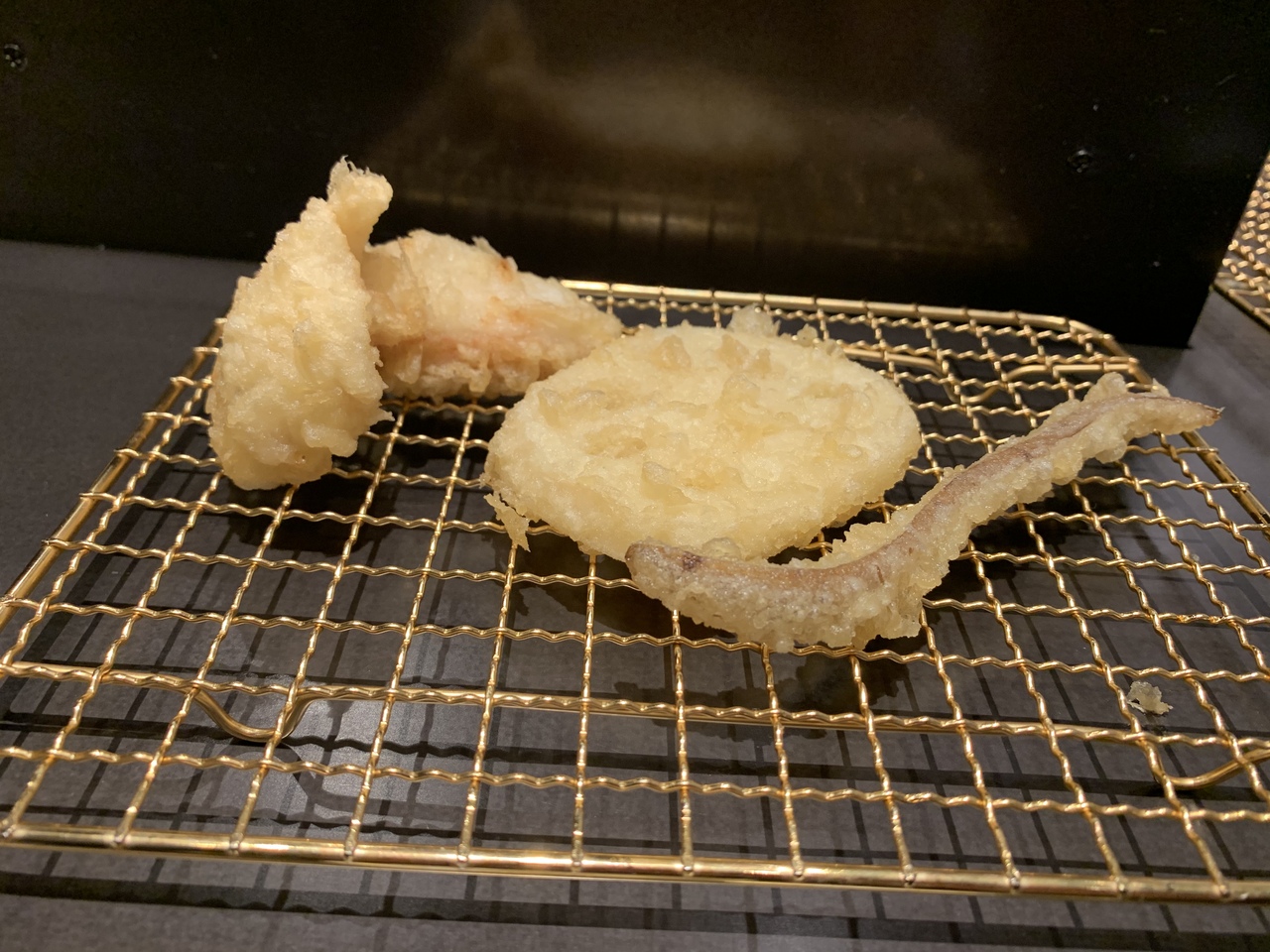 定食の天ぷらも目の前のカウンターで揚げた、揚げたてのものを1~2品ずつ持って来てくれるので常に揚げたてが食べられます。- 旅行時期