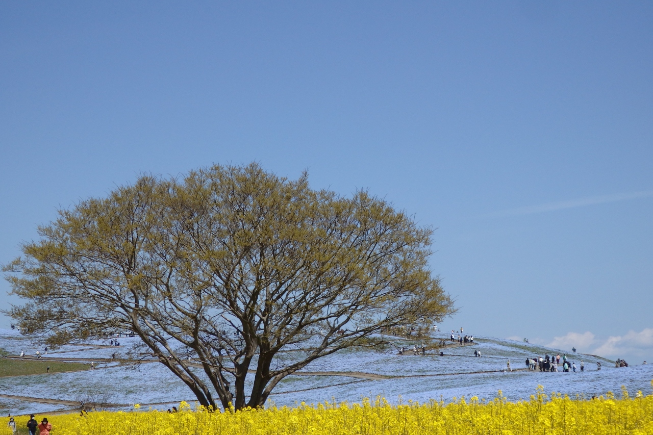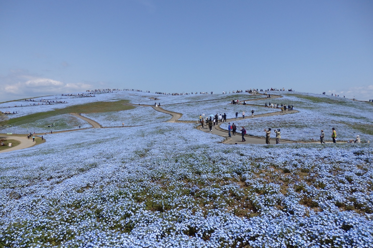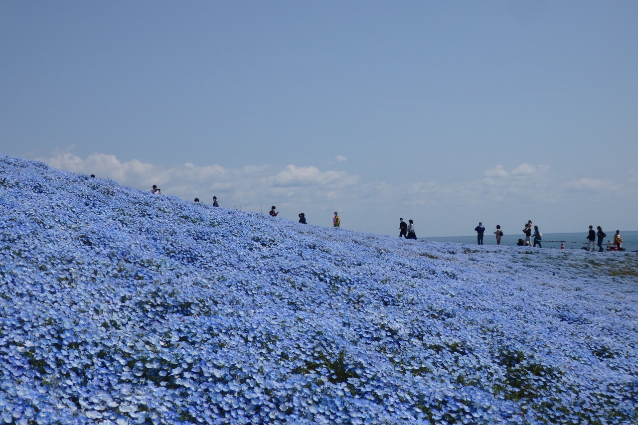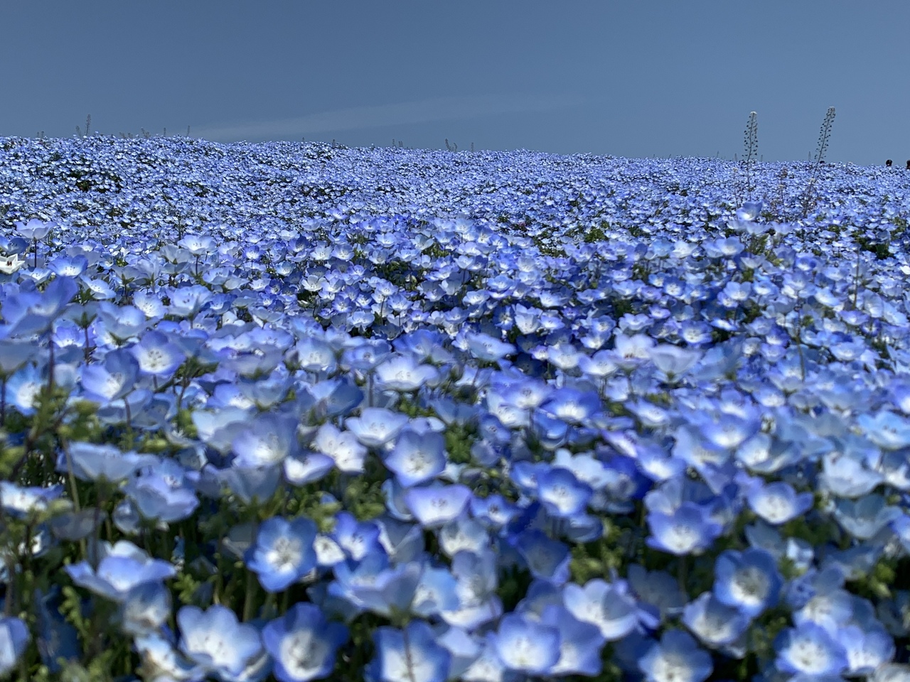 7分咲きでも十分楽しめました、空と丘の境界が分からないくらいの青が広がっています!