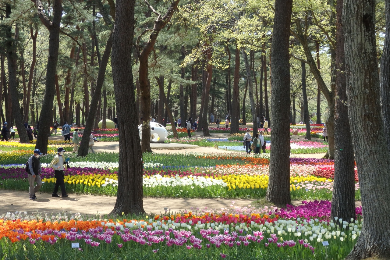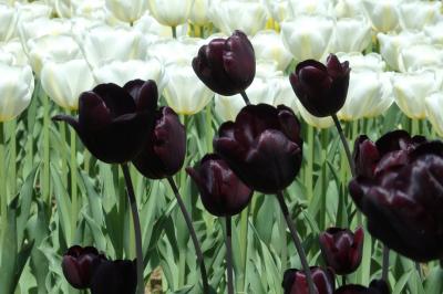 たまごの森のチューリップも見ごろで見たことないチューリップがたくさん咲いていて