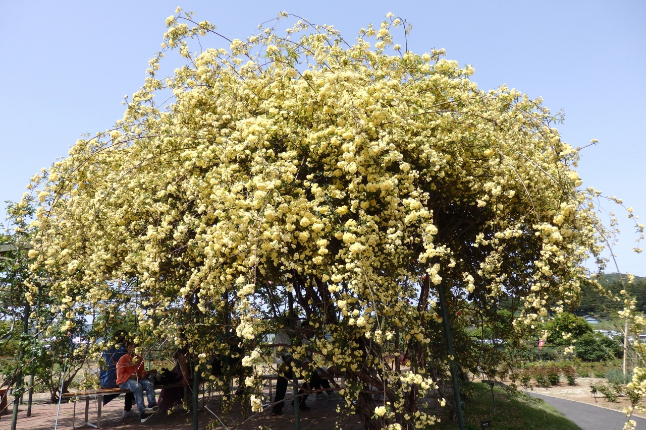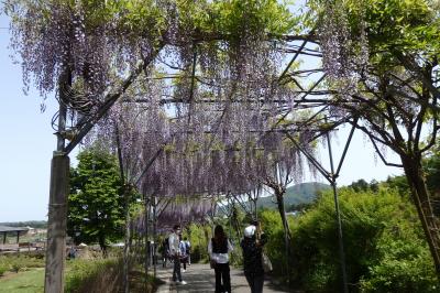 まだバラの見ごろには早かったので少しさびしい感じでしたが、9000株のバラが満開の時にきたら見ごたえあるんだろうなぁ。藤棚は見ごろで良かったです。