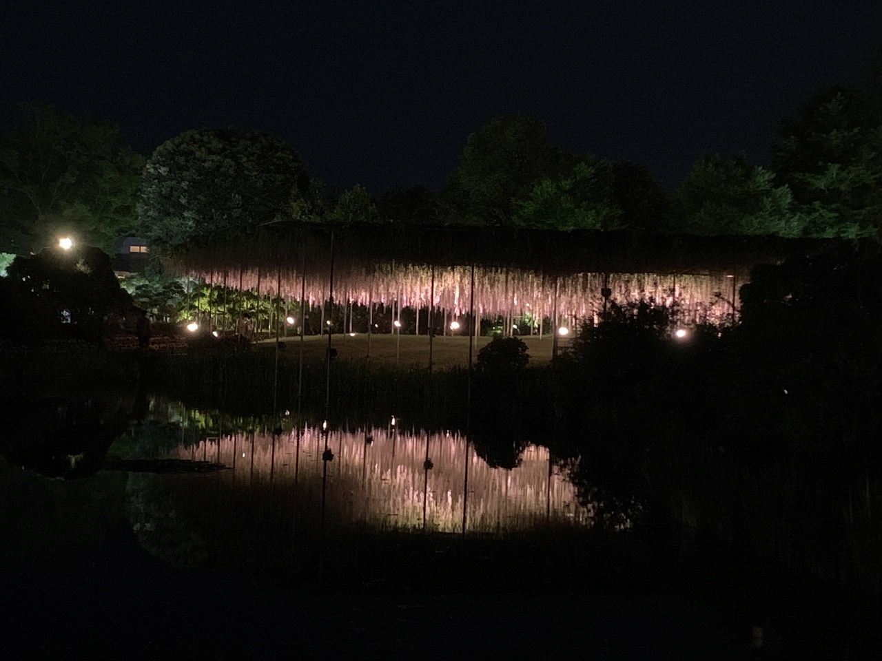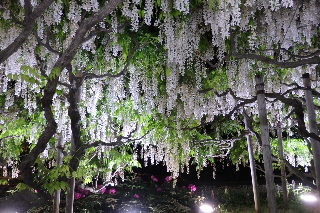 5月8日に行きました。大藤の見ごろは過ぎてしまいましたが、だいぶ花が残っている状態だったので楽しめました。白藤、黄花藤は見ごろでした。今回はライトアップを目当てに17時半入場しました。昼間の料金より300円安くなります。