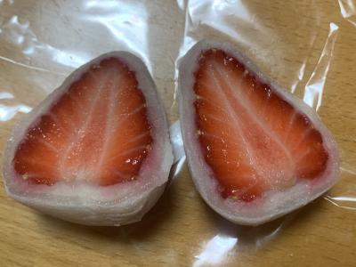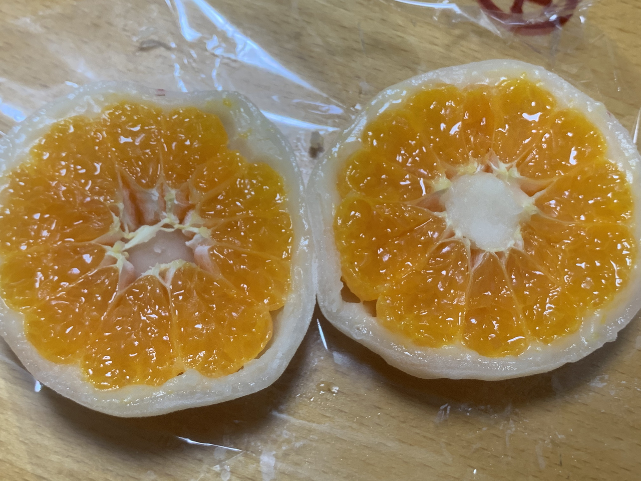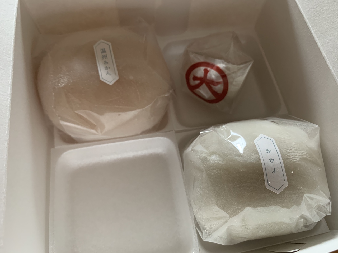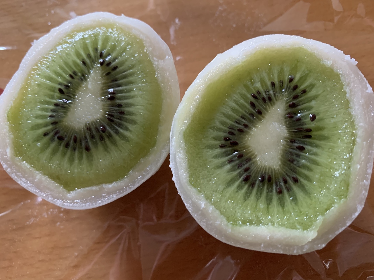やわらかーい求肥の中に白餡にくるまれたみずみずしいフルーツが入っています。