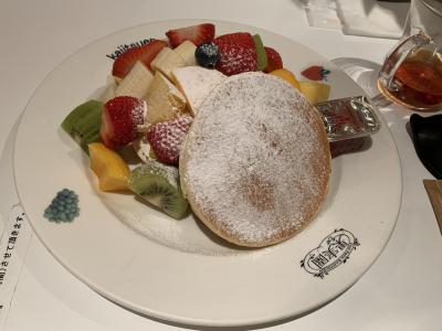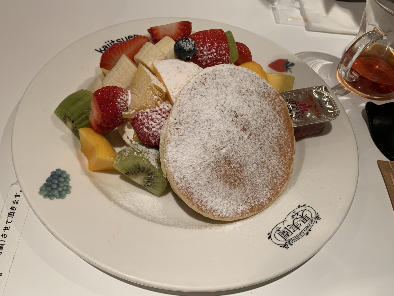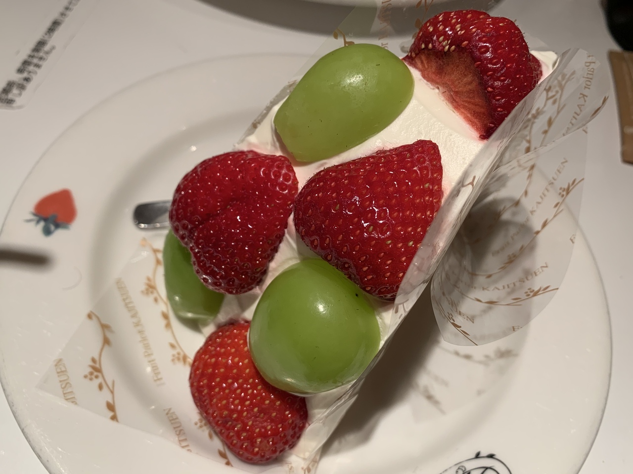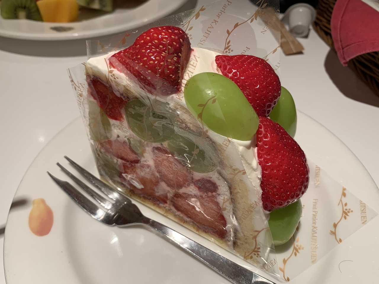 イチゴとマスカットのケーキとフルーツパンケーキを頼みました。