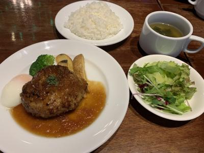 ランチに無性にハンバーグが食べたくなっていきました。検温と手の消毒をしてから入店。