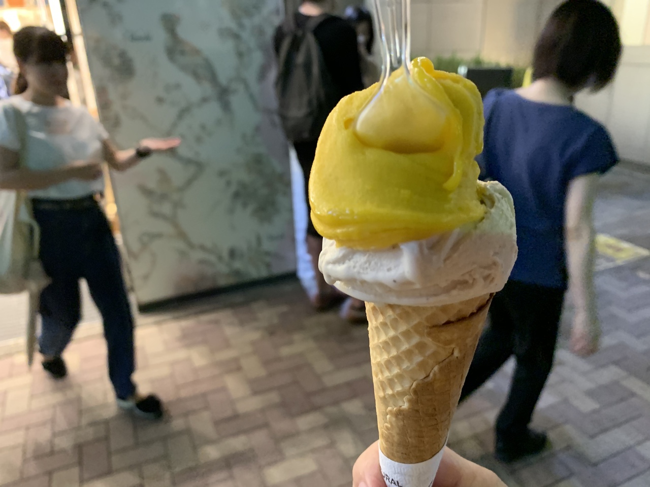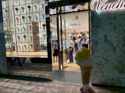 昼間は行列と聞いていたので、夜9時頃に行きましたが・・・行列ではないものの並びました。一番小さいジェラートでも700円という高級品です(2種類選べて、コーンかカップを選べます値段は変わらず)。美味しいが外の暑さでみるみる溶けていく早く食べなくては!という感じで落ち着いて食べられなかったのが残念。椅子やテーブルは用意されていないので皆さん店の外で立って食べています。- 旅行時期