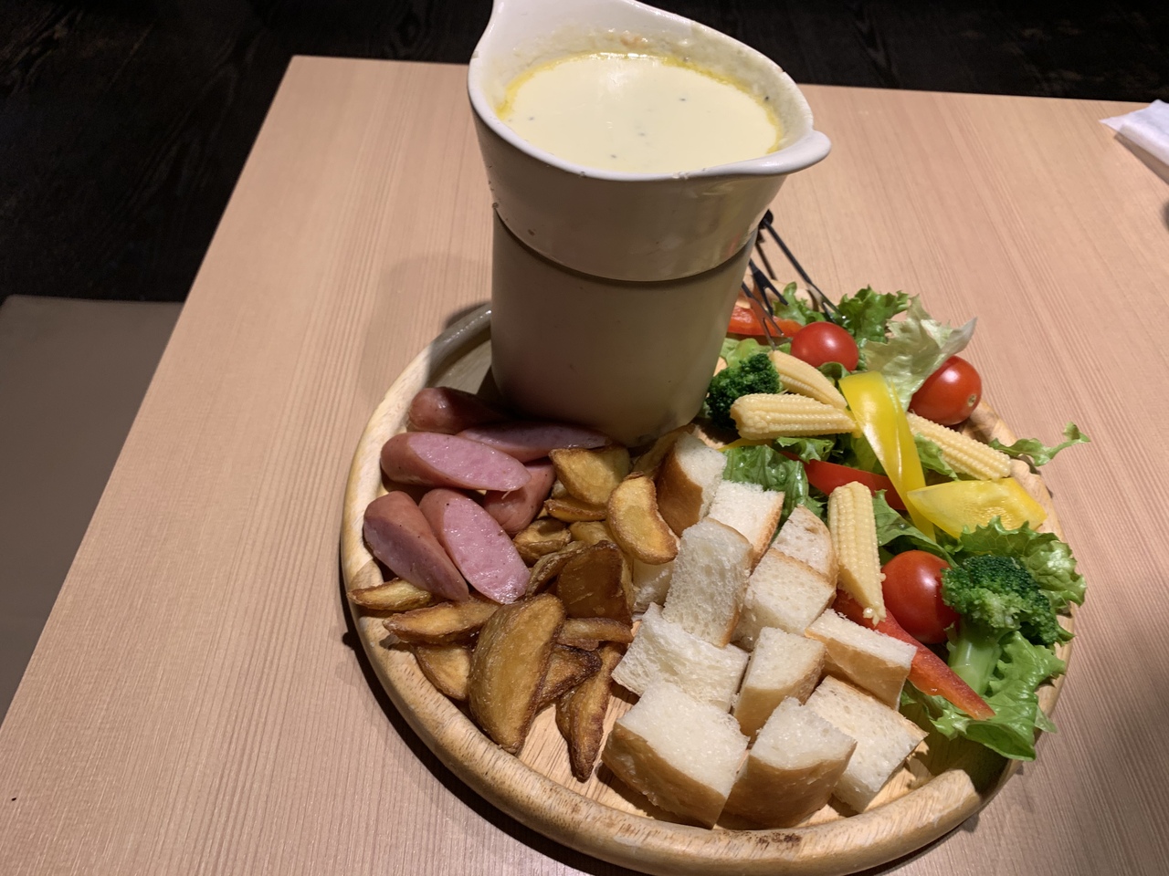 肉バルXラクレットチーズという店名になっていますが、にぎやかな居酒屋でした。料理はオシャレな盛り付けで出てきますが、特段美味しいというわけではないです。見た目がよいので女性は喜ぶと思います。デートにはいいですね。