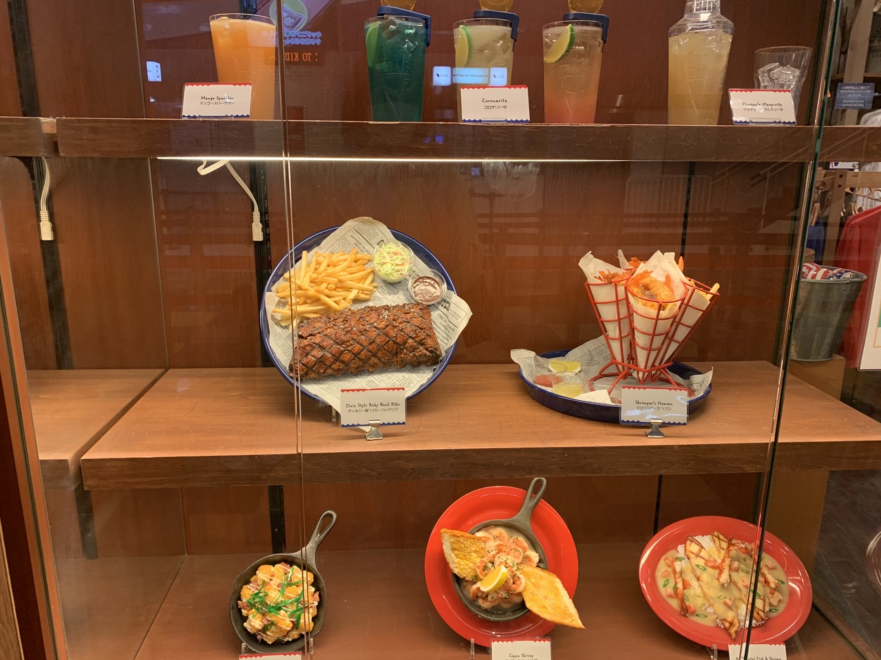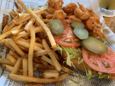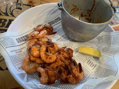 シュリンパーズ ネット キャッチというシュリンプのビール蒸しが一番売りのメニューのようでした。味付けはガーリックバター味とケイジャン味が選べるのでミックスで注文しました。バケツに入ったシュリンプを手で殻ごと食べる感じです。一番量の少ないものをを頼んだのですがそれでも2人で満足でした。