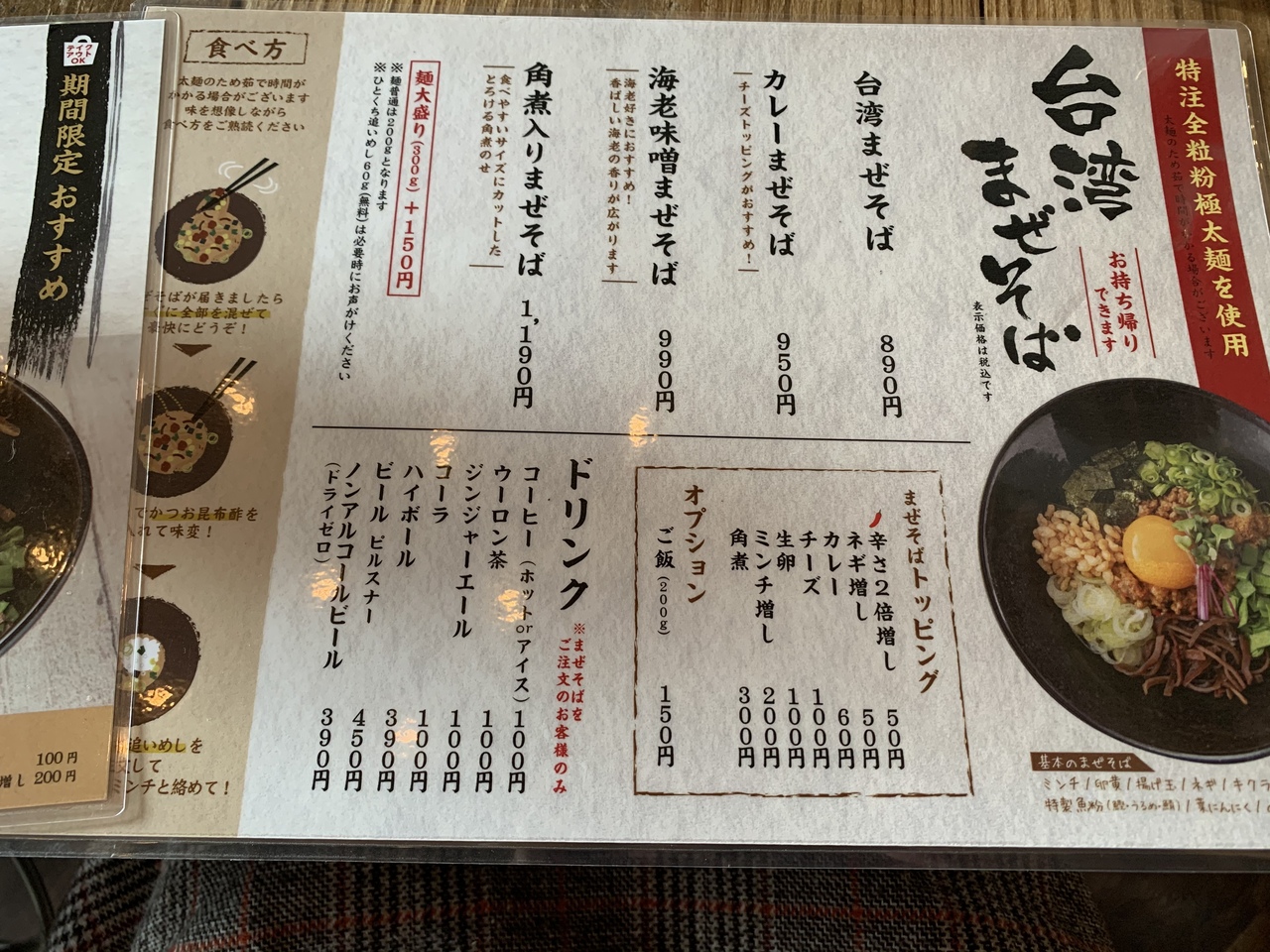 店名はハイボールバーですがランチメニューは台湾まぜそばのみです。
