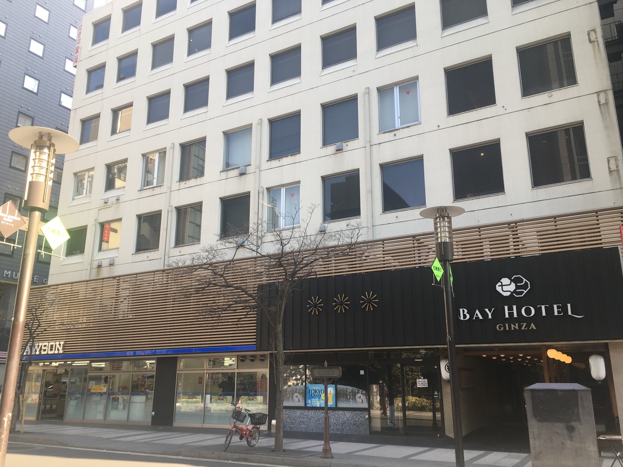 新橋駅から三井ガーデンホテルを目指して行くと分かりやすいと思います、その隣のビルになります。銀座と新橋の境目という感じのところなので、夜になると周辺は閑散としていました。ホテルの隣がローソンなので食事には困りませんでした。