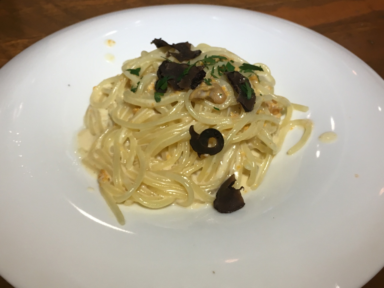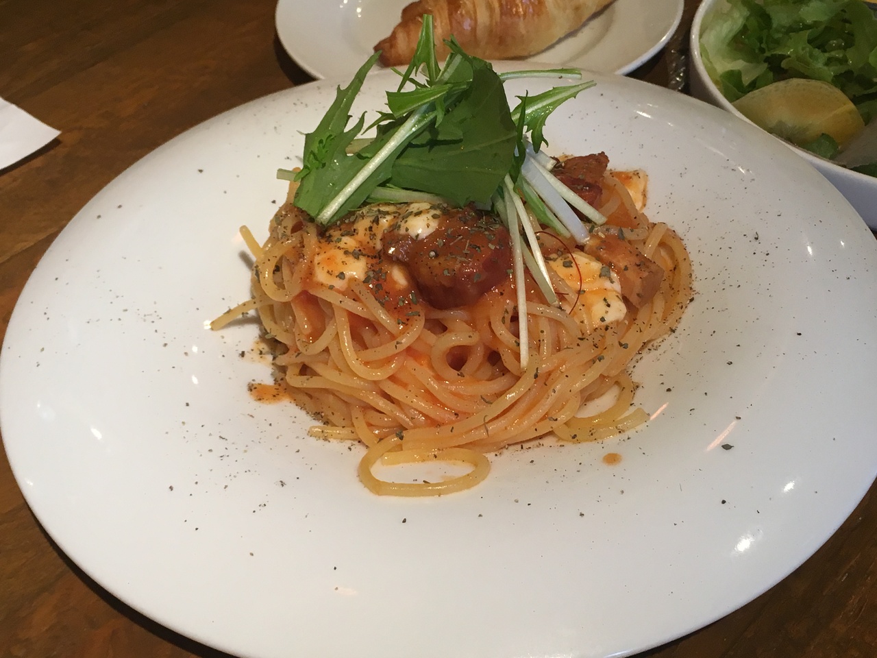 パスタは美味しく、クロワッサンも少し甘くて美味しいです。