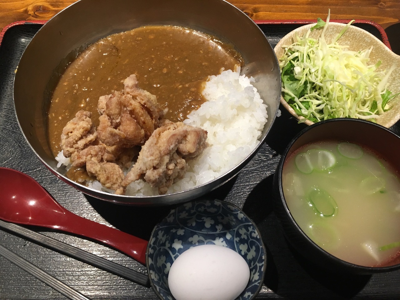鳥の唐揚げがおすすめらしく、カレーライスを頼んだカレーの上にも唐揚げがのってましたよ。