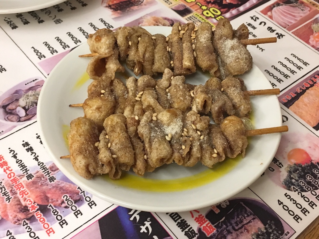 名物の鶏皮串¥90がめちゃくちゃ気に入ってしまい、8本も食べてしまいました(笑)