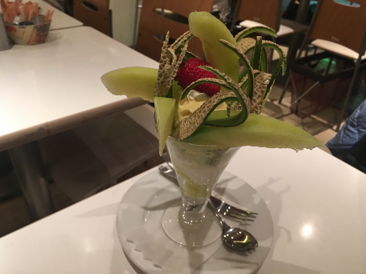 この日はいちごとデコポンのパフェ、マスクメロンパフェ(各1800円)