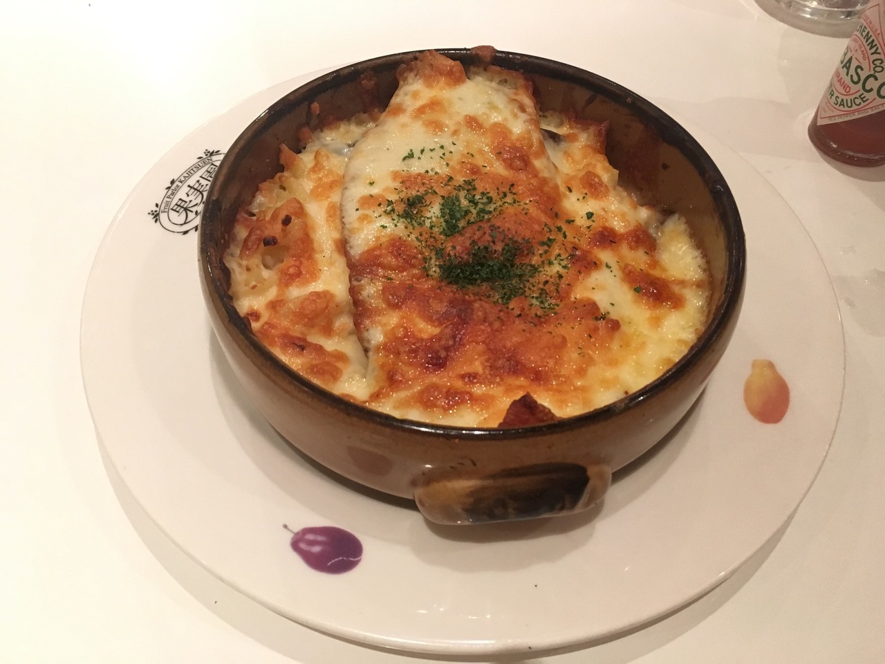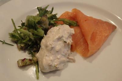 晩ご飯も兼ねていたので、サーモンときのこのグラタンを2人でシェアして食べました。