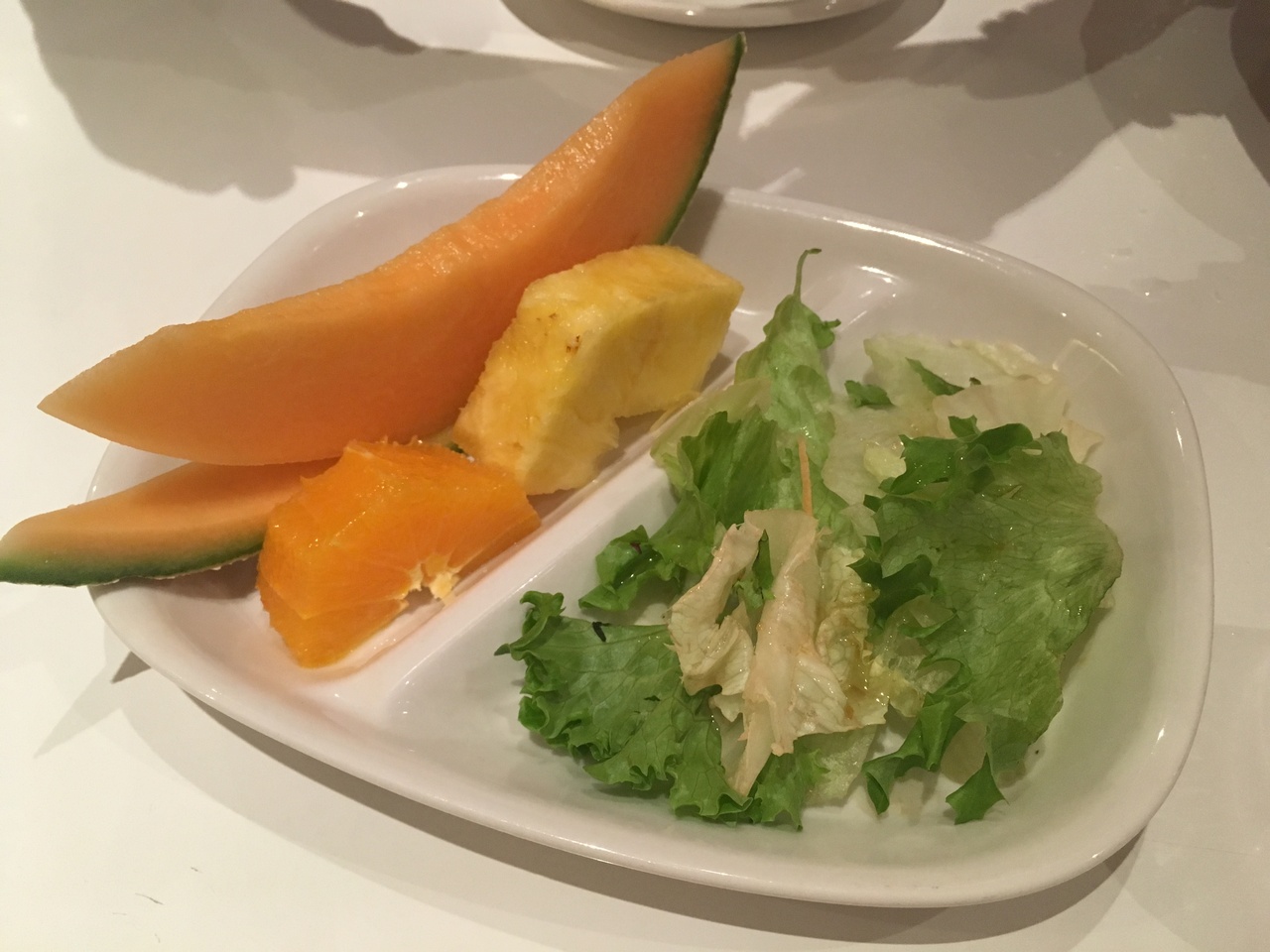 なかなかボリュームあり(980円)、サラダも付いていて、サラダには大きなフルーツも付いています。
