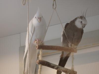 仲良く戯れるインコたちをガラス越しに見ながらのんびりお茶ができるカフェです。