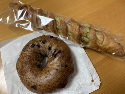 紅茶ブルーベリーベーグル¥360とアボカドベーコン¥350を持ち帰り購入。