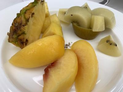 この日は桃と(福島の白桃・黄桃)、キウイもゼスプリグリーンキウイ、ゼスプリサンゴールドキウイ、ニュージランド産ゴールデンキウイと3種類が日替わり。